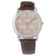 The watch looks really great! Very sharp and well done. The leather band is really nice, though for a man's watch I think it should be longer. Unfortunately, it isn't big enough for my husband's wrist but I will get a replacement because he is very excited to wear it!