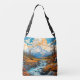 This cute crossbody bag features a creative and colourful river valley mountain landscape illustration. This shopping bag would make a wonderful gift idea.
