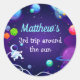 Outer Space 3rd Birthday Blue Astronaut Planet Classic Round Sticker