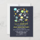 Birthday party invitation on magnetic paper. Designed with a cute and colourful pattern with all kinds of outer space themed elements. Images include astronauts floating around in their white spacesuits. Stars and planets and cool little rocket ships, spaceships, and satellites. Fun and crazy design.