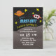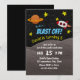 Rocket Ship Blast Off Outer Space Birthday Party Invitations.