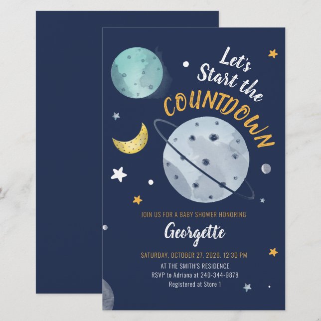 Outer Space Countdown Virtual Baby Shower Stationery