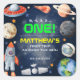 Blast off to the best first birthday ever! Celebrate your little astronaut's "First Trip Around the Sun" with this whimsical, watercolor outer space sticker. Featuring hand-painted rockets, planets, and stars against a deep navy galaxy background, this sticker is perfect for a modern and fun birthday bash. Use as favors, on gift bags, or as envelope seals. Available with matching products.