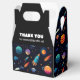last off to fun with this Outer Space Rocket Birthday Party Favour Box! Featuring a cute rocket ship surrounded by colourful planets and stars, it’s perfect for space-themed birthday parties. Fill with sweets, small toys, or treats to delight your little astronauts. Ideal for boys and girls who love outer space adventures! Pairs perfectly with matching invitations, plates, and decor from the same collection.