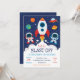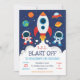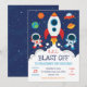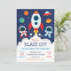 Outer Space Rocket Ship Astronaut Galaxy Birthday Invitation