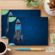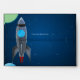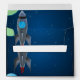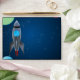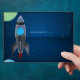 Celebrate the boy's birthday or special occasion with this cool space rocket ship in outer space. Dark blue sky with stars and colourful planets, and a silver rocket shooting through the sky. Colourful and bright. All Designs Copyright © 2012 www.CustomInvitesOnline.com