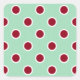 Playful stickers feature dark red polka dots outlined in white on a pale green background.