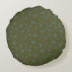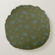 Outlined Teal Blue and Green Floral Round Cushion