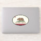 Oval California Republic vinyl sticker for car, caravan, trailer or camper. Country code abbreviation optional. Create your own personalised symbol stickers for vehicle, luggage, bike, water bottles, laptop and other products. Unique contour-cut stickers. Available in small, medium and large sizes. Add your own text or monogram. Great for international and national travel, road trips, vacations, events and more. Classic European style oval shape sticker sign. Vintage style Californian flag with bear logo. Remove filter for a non faded look.