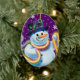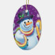 Oval shape purple Christmas tree decoration Snowman and tinsel. Purples.