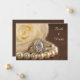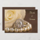 Announce your recent private marriage ceremony or secret elopement with the elegant Oval Diamond Ring and White Rose Marriage Announcement. This classy custom announcement features a close up floral photograph of an oval diamond engagement ring, white pearl necklace and white rose flower blossom on a chocolate brown silk background.