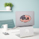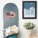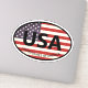 Large oval American flag USA country code car decal sticker. Country code abbreviation sign for cars. Create your own personalised code for country or state. Add your own text or monogram. Classic European style oval shape design. US flag of United States of America. Patriotic stars and stripes design. Vintage red white and blue colours. Cool automotive gift ideas for him or her.