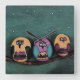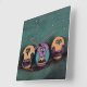 Oval Shaped Owls Against NightSky Primitive Art Square Wall Clock