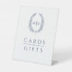 Oval wreath white navy wedding cards and gifts pedestal sign