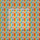 This fabric has a mid-century modern design of ovals and circles in orange, gold, teal, and turquoise on a field of white. Want the same design with different colours? Message me.