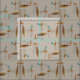 Mid-Century Modern orbs, ovals and lines on a light brown background. Classic mid-century intersecting lines and star pattern.