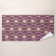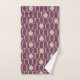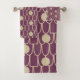 This towel set has an art deco design of ovals, rectangles, and circles in horizontal lines repeating in rows.