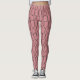 These leggings have an art deco design of pink ovals, rectangles, and circles in grey horizontal lines repeating in rows.