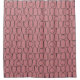 This shower curtain has an art deco design of pink ovals, rectangles, and circles in grey horizontal lines repeating in rows.