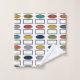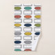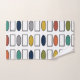 This towel set has a mid-century modern design of repeating rectangles and ovals in retro colours.