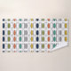 This towel set has a bath towel with a mid-century modern design of repeating rectangles and ovals in retro colours, a red washcloth, and a turquoise hand towel.