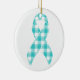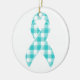 Ovarian Cancer Awareness Plaid Teal Ribbon Ceramic Tree Decoration