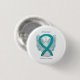 Ovarian cancer awareness cause uses a teal green ribbon. The awareness pin features the painting of a teal awareness ribbon angel on a custom button pendant. The pin states "Ovarian Cancer Awareness" but can be updated with a personal awareness message. Teal awareness angel ribbon art lapel pins or buttons can be customised with personalised messages to make great cause buttons for fundraiser pendants, awareness pin gifts, or other special pendant events or awareness lapel pin for the cause's occasions.