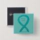 Ovarian cancer awareness cause uses a teal green ribbon. The awareness pin features the painting of a teal awareness ribbon on a custom button pendant. The pin states "Ovarian Cancer Awareness" but can be updated with a personal awareness message. Teal awareness ribbon art lapel pins or buttons can be customised with personalised messages to make great cause buttons for fundraiser pendants, awareness pin gifts, or other special pendant events or awareness lapel pin for the cause's occasions.