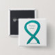 Ovarian cancer awareness cause uses a teal green ribbon. The awareness pin features the painting of a teal awareness ribbon on a custom button pendant. The pin states "Ovarian Cancer Awareness" but can be updated with a personal awareness message. Teal awareness ribbon art lapel pins or buttons can be customised with personalised messages to make great cause buttons for fundraiser pendants, awareness pin gifts, or other special pendant events or awareness lapel pin for the cause's occasions.