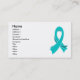 GiftsForAwareness.com features a line of awareness business cards with a stylish teal ribbon to recognise Ovarian Cancer advocacy. Ideal to use to distribute your contact information for awareness events, awareness walks, fundraisers, awareness functions and anytime to promote awareness for the cause you support.