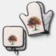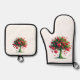 Oven glove and pot holder with a beautiful print of a flowering tree with the fruits of love... not only useful but very cute as a decoration for your kitchen.