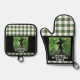 Painted Wickedly Good Witch Green Gingham Plaid Oven Mitt and Pot Holder Set - This Oven Mitt and Pot Holder Set features a green and black painting of a witch in an enchanted forest on top of a white and green gingham chequered plaid pattern. Designed for those who loves dark fantasy and spooky things.