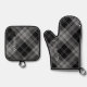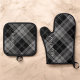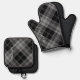 Oven Mitt Pot Holder Set Personalised Black Plaid