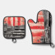 Oven Mitt & Pot Holders Red Pulse Abstract Design Holder Set