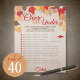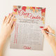 Have your guests guess if the statement is over, under or equal to the correct answer (the bride's). The person with the most correct, wins! Statements are editable using the "Edit this design" feature.