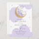 Baby Shower invitation featuring gold glittery moon and fun script "We are over the moon!" Personalize with your information or click "click to customize further" to adjust font type, size, color.