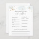 Baby shower advice and predictions card featuring watercolor blue clouds and gold stars. A fun way to interact with guests during your baby shower. Matches the Over the Gold Moon Collection in the Adore Paper Co Zazzle Shop.