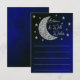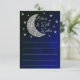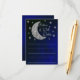 Over the moon baby shower with silver moon and stars against a black and blue night sky background