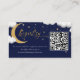 This is an adorable baby shower books for baby and gift registry enclosure card based on the phrase “We are over the moon”. The design features a cute handwritten script calligraphy font, a bright golden moon accompanied with gold stars and cute fluffy clouds in a twinkling starry night sky.