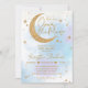 Welcome your little one and celebrate the parents to be with this whimsical invitation featuring gold moon and stars and clouds. This is a perfect design for gender neutral baby showers and more!