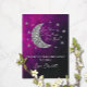 Over the moon baby shower with silver moon and stars against a black and pink purple night sky background