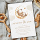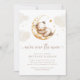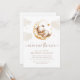 Over the Moon Gender Neutral Baby Shower Invitation features a cute watercolor illustration of a teddy bear resting on a yellow moon surrounded by stars and clouds. Personalise it with your event details. An elegant, sweet invitation, perfect for your event!