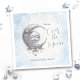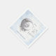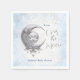 We are over the moon elegant celestial baby shower paper napkins in blue and silver grey with a lovely moon and the baby face, diamonds and stardust. Boy baby shower napkins, easily personalise the text. - Kate Eden Art