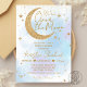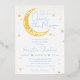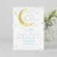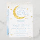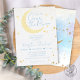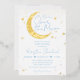 Welcome your little one and celebrate the parents to be with this whimsical invitation featuring gold moon and stars and baby blue prints. This is a perfect design for baby boy baby showers and more!