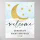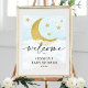 Over The Moon Boy Blue Baby Shower Welcome Poster