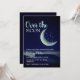 This design features baby shower theme "Over The Moon" with a crescent moon and stars, celestial starry night in navy background. Customise with your event details.