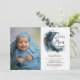nvite guests to celebrate your little one’s arrival with this charming "Over the Moon" baby shower invitation, featuring gold stars and a soft blue background.
