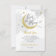 Over the Moon Grey Gold Stars Baby Shower Thank You Card