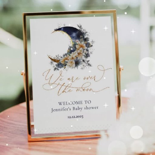 We are over the moon navy blue gold baby showerDesigned by Julia J