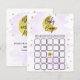 These "over the moon" bingo cards are perfect for anyone having a baby shower this year. The design features a golden moon with stars on a pretty purple watercolor background and easy to personalise template wording.